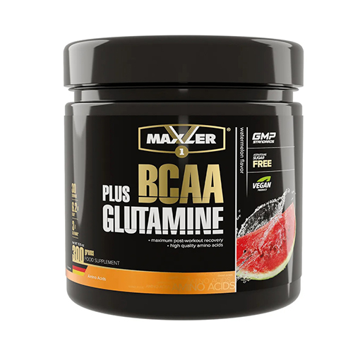 BCAA + Glutamine – добавка на основе трех незаменимых аминокислот с разветвленными цепями: лейцин, изолейцин и валин, с добавлением аминокислоты глютамина; BCAA играют важную роль в росте и развитии мышц, а также способствуют быстрому восстановлению после интенсивных физических нагрузок; Глютамин останавливает катаболические процессы в мышцах, помогая нарастить и сохранить мускулы;