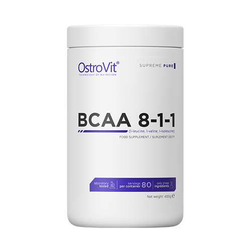 OstroVit BCAA 8-1-1 – это пищевая добавка высшего класса, содержащая аминокислоты с разветвленной цепью высочайшего качества (BCAA); К таким аминокислотам относятся: лейцин, изолейцин, валин; Они имеют решающее значение для здоровья, потому что относятся к так называемым незаменимым аминокислотам – аминокислотам, которые наш организм не может синтезировать самостоятельно;