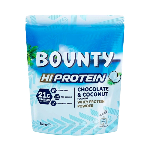 Сывороточный протеин Bounty Hi Protein Whey Powder производителя спортивного питания Mars Incorporated; В одной порции 21 грамм высококачественного протеина с мощным аминокислотным профилем; Ускоряет рост и восстановление мышц после активных тренировок; Позволяет подавить разрушительное действие катаболизма;