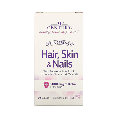 21st Century® Healthy Renewal Formula™ для для волос, кожи и ногтей с увеличенной эффективностью поддерживает вашу внутреннюю красоту; Биотин и витамин А — это питательные вещества, необходимые для блестящих волос, крепких ногтей и сияющей кожи;