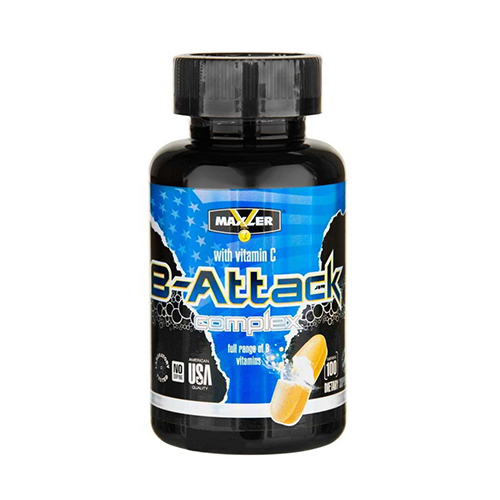 Комплекс B-Attack Complex от Maxler – это смесь витаминов группы B и других компонентов для поддержания нервной системы, улучшения состояния кожи и волос, а также для улучшения печеночной функции; Данные компоненты дают энергию и необходимы для метаболизма углеводов, жиров и белков;