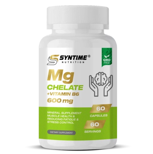 Магния хелат от Syntime Nutrition — это форма магния, погружённого в аминокислоту, что облегчает биодоступность Усваиваемость хелата и соответственно магния из него - 90%, он не меняет кислотности желудка, в отличие от форм, соединённых с кислотами— поэтому подходит всем, но соответственно менее эффективен при запоре и др дискинезиях ЖКТ В 6 входящий в состав помогает усваиваться магнию ,а так же помогает поддерживать здоровье нервной системы человека